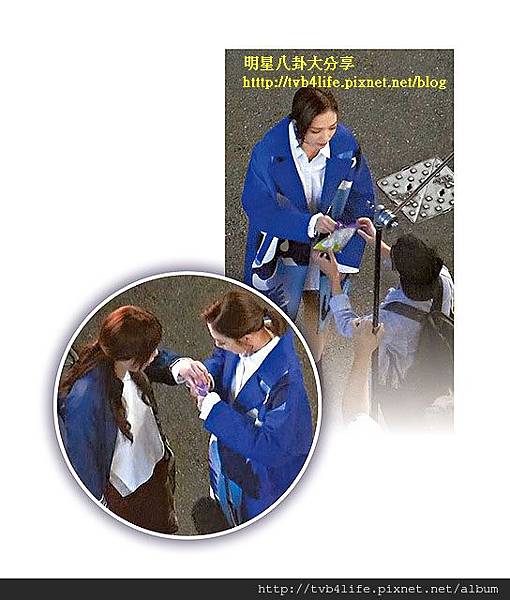對住男工作人員,君馨嘟嘴扮 cute。 攝時間陪女友